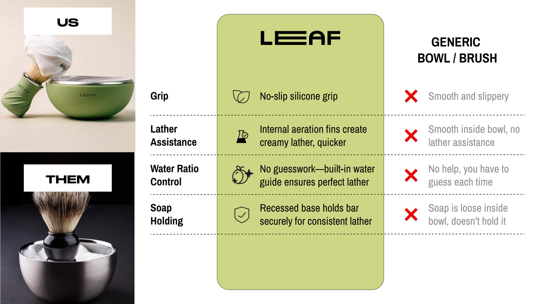 Like all Leaf Shave toolsβeveryone. Whether youβre shaving your face at the sink or your legs in the shower, this set makes lathering effortless. Elevate your routine and experience the rich, creamy lather your shave deserves.