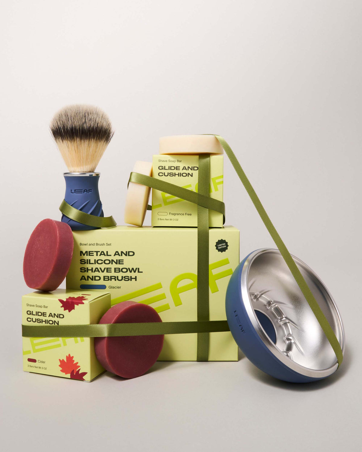 The gift for anyone who takes their shave seriously. Exclusive Glacier Shave Bowl & Brush Set paired with two packs of our best-selling shave soaps. Everything they need for premium-quality lather at home.